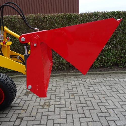 De multifunctionele vier-in-één-bak dient voor het grovere werk. Deze bak kan gebruikt worden om de grond te schaven, om zand of stenen te scheppen en zijn lading hoog te lossen, of om allerlei voorwerpen vast te knijpen. Deze bak kan ook voorzien worden van baggertanden.