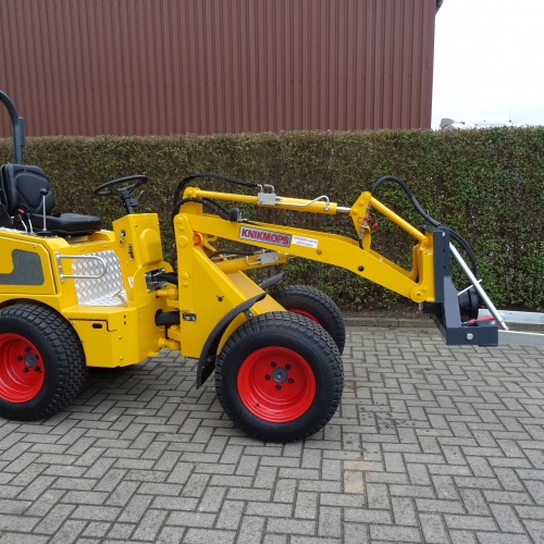 Met behulp van een werktuigdrager kan men toestellen van minitraktoren aandrijven met hydrauliek en cardanas aandrijving.